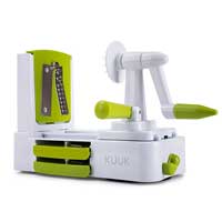 Il s'agit d'un appareil multifonction pour couper ou trancher grâce à des lames interchangeables. Complètement manuel, il découpe les fruits et légumes en spirales de différentes formes et épaisseurs pour préparer ou agrémenter les salades, juliennes, desserts, accompagnements, etc.