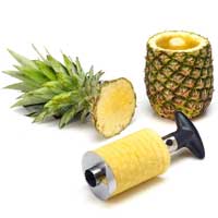 Les mangeurs de fruits apprécieront cet ustensile, il permet de préparer un ananas en moins de 30 secondes. Vous obtenez facilement des rondelles d'ananas, sans la peau et sans le coeur, tout simplement en tournant l'éplucheur, comme avec un tire-bouchon.