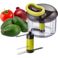 Ce hachoir manuel utilise un système breveté. Le tirage de la poignée intégrée permet d'actionner un rotor pour découper ou mixer (légumes, viandes, etc.).