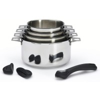 Compatible tous feux et four, cette poêle tout-en-un fait également office de sauteuse, de cocotte, de friteuse, de cuiseur vapeur, etc. Elle est fournie avec deux poignées amovibles, un panier vapeur et une spatule en bois.