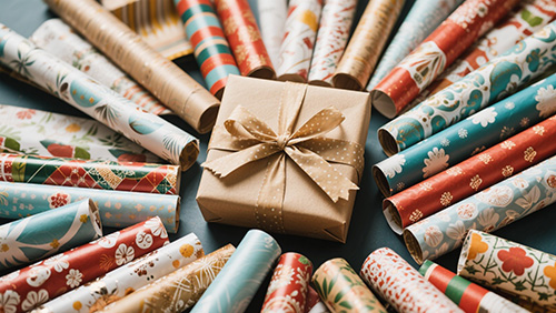 Moins courant que le papier couché ou kraft, et plus difficile à plier, il donnera une touche glamour et luxe à un emballage cadeau.