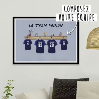Choisissez un nombre de personnes, puis personnalisez l'affiche avec les noms ou prénoms de votre choix. Notez que les maillots sont également personnalisables.